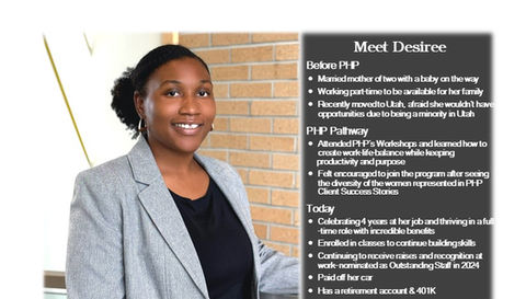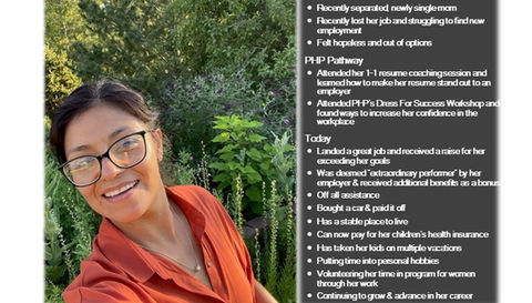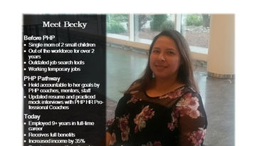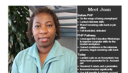 PHP clients who advance through all 4 phases of our program become successfully employed and self-sufficient. Many become Ambassadors of the PHP program and several volunteer as coaches and mentors.